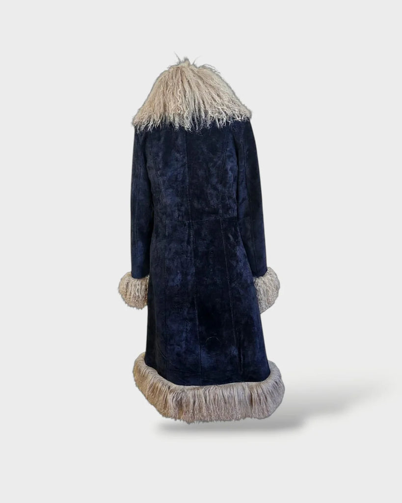 The Mehar Coat is a stunning example of traditional Afghan design, featuring luxurious Mongolian fur and smooth suede.